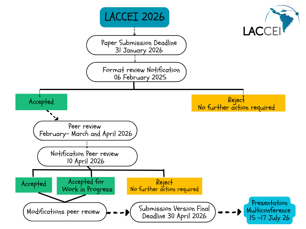 - Para ser incluido en el programa de la Conferencia y publicado en las Actas de LACCEI 2026, se requiere el registro no reembolsable de al menos un autor (no un Registro de Estudiante).